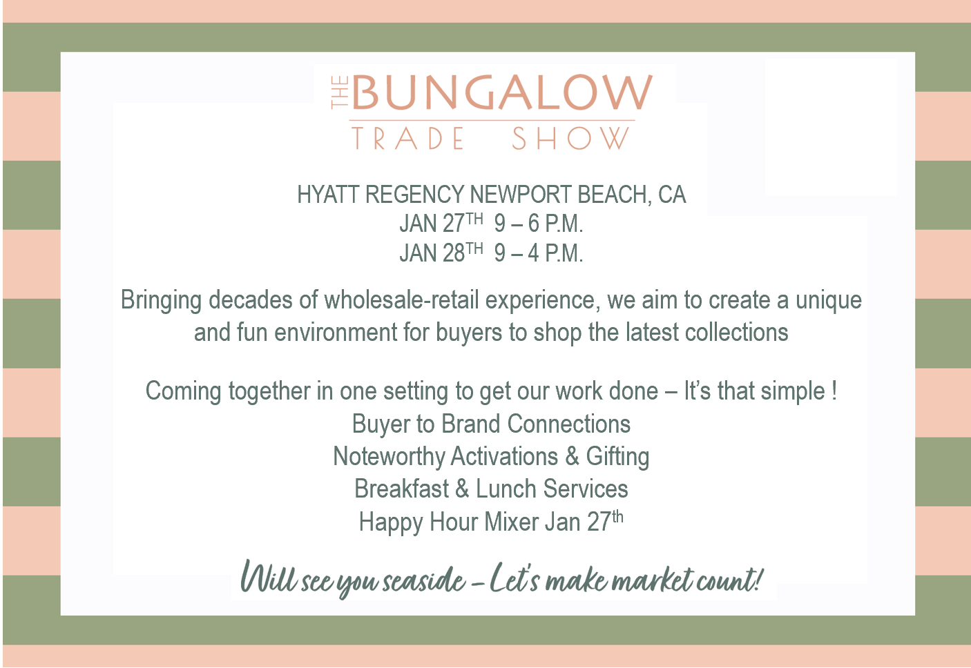 Please join us as our premier brands showcase their newest summer and resort collections. We are back at the Kimpton Shore break for another two days of fashion and fun. Please make sure to join us Thursday June 15th & Friday June 16th when registration opens.